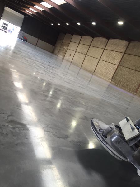 Door het beton te polijsten wordt het oppervlak verdicht, waardoor het een glans krijgt. Het betonnen oppervlak is zo hard dat het zelfs tot hoogglans kan worden gepolijst, zoals dat ook bij natuursteen het geval is. Daarvoor hoeven geen extra middelen, zoals lak of sealer, worden ingezet. Voor het schuren en polijsten van beton worden diamant schuurmachines gebruikt. Da gebeurt in stappen, waarbij telkens een fijnere korrel wordt gebruikt en het oppervlak van de betonvloer steeds glanzender wordt.