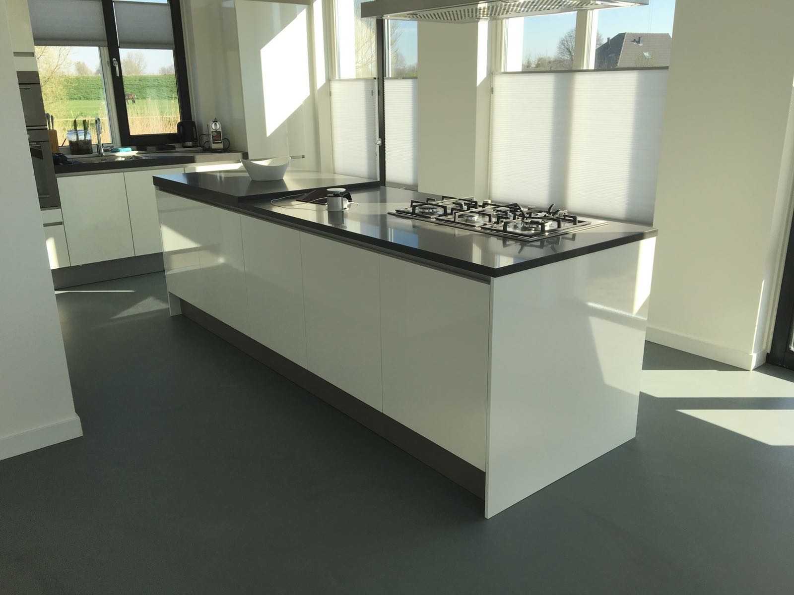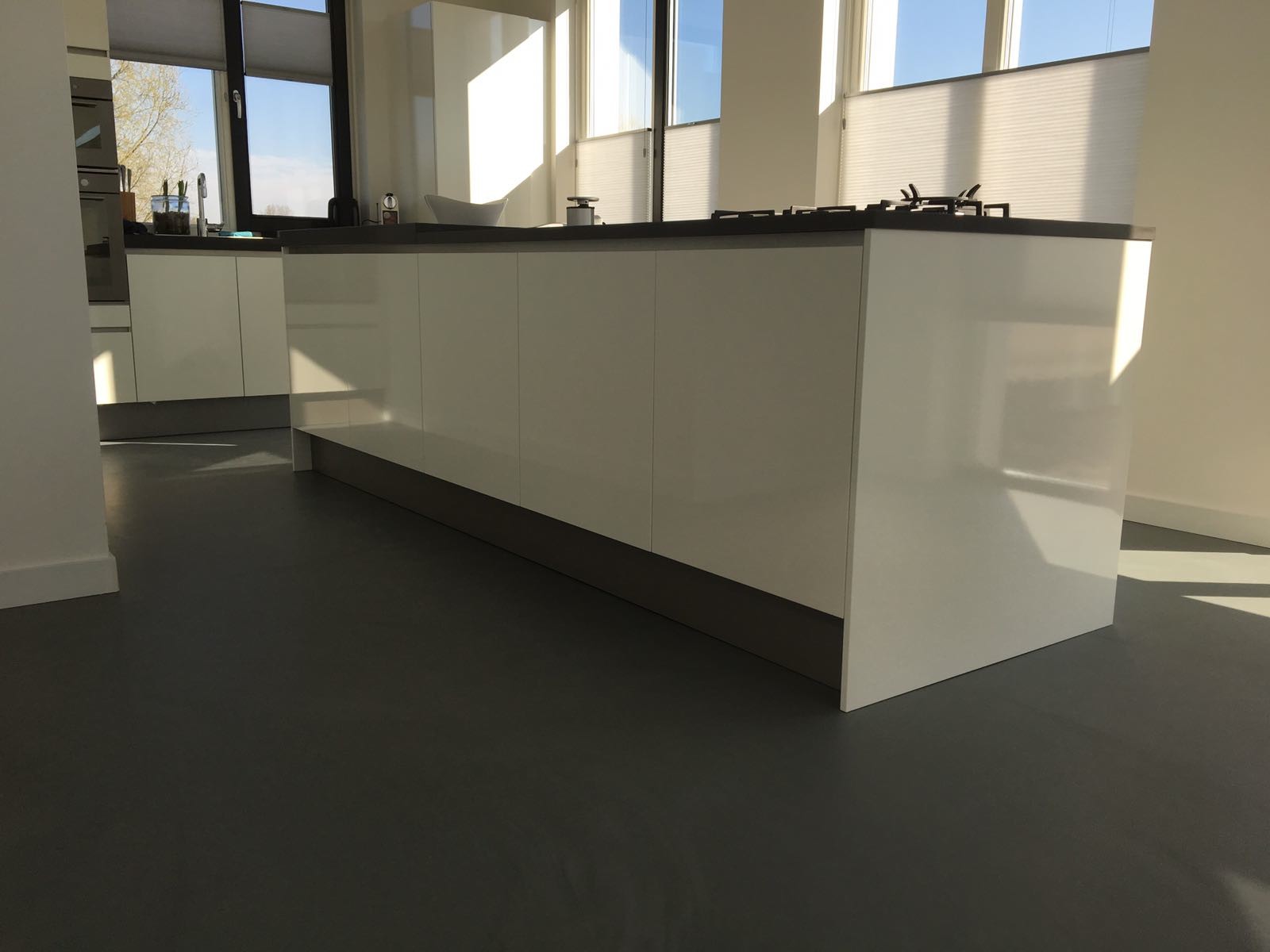 Gietvloer in woonkamer en keuken; Practisch en fraai!