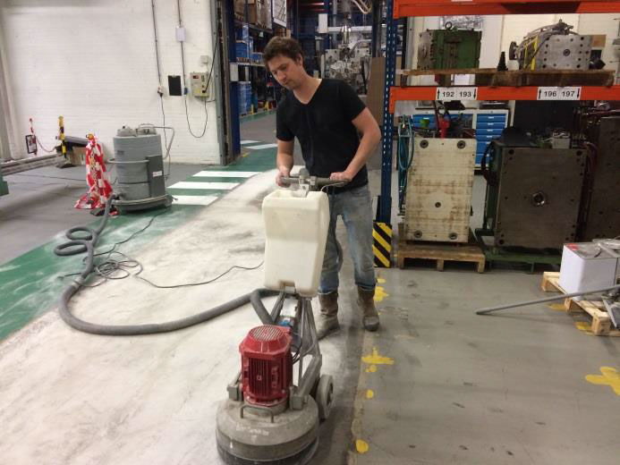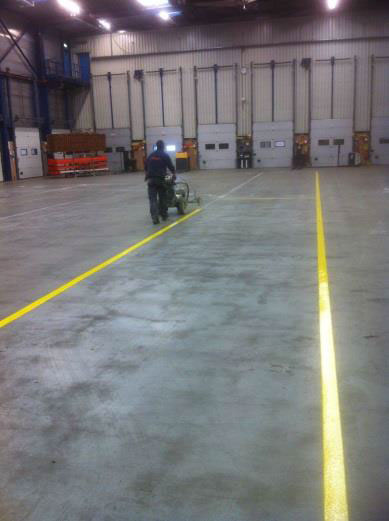 Bij Ubbink International in Doesburg hebben wij ondertussen meerdere herstelwerkzaamheden aan de vloer gedaan. Op vrijdag 1 mei zijn we begonnen met het voorbereiden van de werkzaamheden en op zaterdag 2 mei zijn de werkzaamheden uitgevoerd. Er zijn twee ruimtes van in totaal ca. 450 m2 voorzien van een nieuwe coating laag ( speciaal voor de industrie) met een matte aflaklaag. Er is een EPG epoxy coating gebruikt van Quartzline. Verder is de oude belijning (ca. 250 m1) opnieuw over gespoten. Zie ook de foto hieronder.