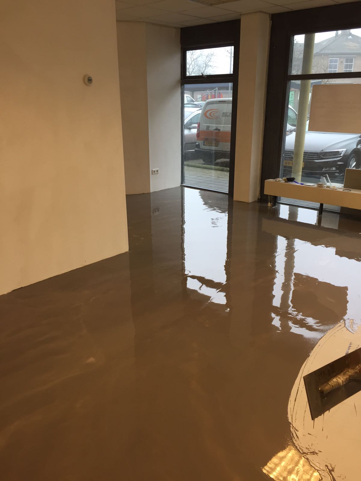 - Gieten van de epoxy gietvloer (ca. 2,5 á 3,0 kg/m2)