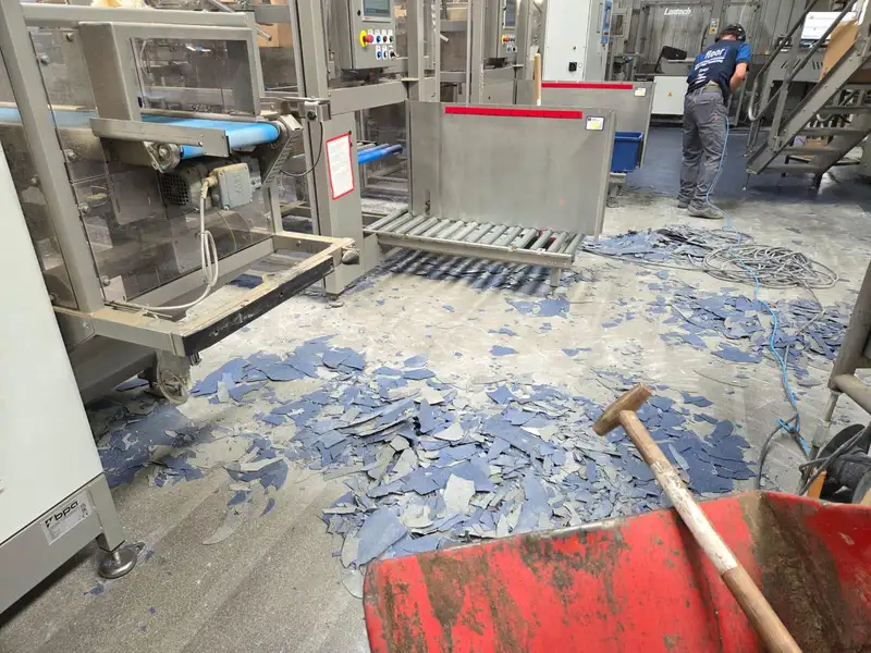 Na het zorgvuldig verwijderen van de oude vloer en het voorbereiden van de ondergrond, is in twee dagen tijd een volledig nieuw PMMA-vloersysteem aangebracht. Dankzij de snelle uitharding van PMMA kon de productiestilstand tot een minimum worden beperkt.